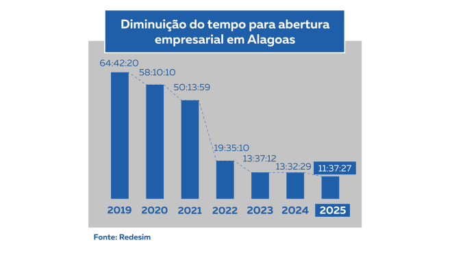 Em 2025, Alagoas encerrou o ano atingindo o menor tempo médio para abertura de empresas: 11 horas e 37 minutos. O número representa o melhor tempo alcançado na história do estado, refletindo em uma diminuição de 14,16% em relação às 13 horas e 32 minutos estabelecidas em 2024.