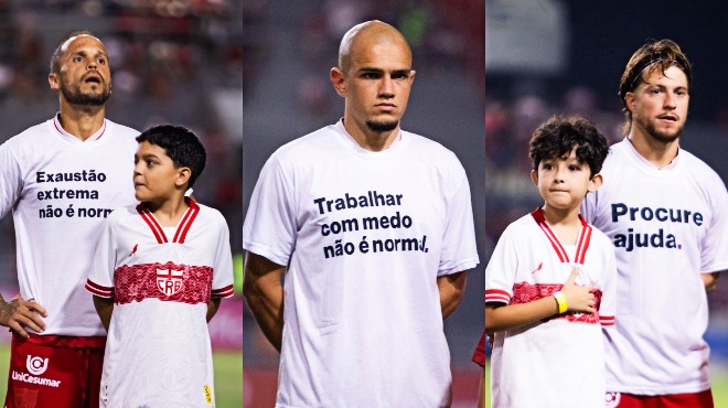 Na entrada em campo, desde a partida do dia 15, os 11 jogadores do CRB vestem camisas brancas com mensagens curtas e profundamente humanas — frases que revelam sentimentos vividos em silêncio por milhões de brasileiros e também por atletas.