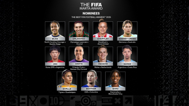 A alagoana Marta foi indicada nessa quinta-feira (13) ao prêmio de gol mais bonito da temporada no futebol feminino do Fifa The Best. Desta forma, a Rainha do futebol tenta conquistar novamente a distinção, que garantiu no final de 2024 e que leva o seu próprio nome.