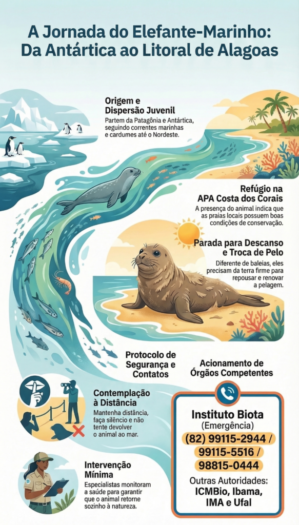 “O fato de dois elefantes-marinhos terem sido observados em Alagoas, na APA Costa dos Corais, pode sim sugerir um melhor estado de conservação dessa região”, reforçou, fazendo um alerta.