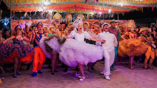 A cidade cenográfica da comunidade fizeram o público “mergulhar” na receptividade e beleza nordestinas Os grupos de Guerreiros, Maculelê, dança das peneiras e trio pé de serra foram atração.
