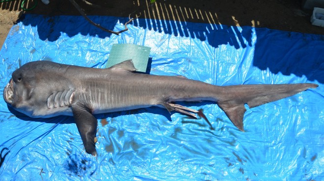 Um curioso e raro tubarão, conhecido popularmente como “megaboca” (Megachasma pelagios), encalhou sem vida na praia da Barra dos Coqueiros, em Sergipe, no dia 4 de julho. Este foi apenas o quarto registro confirmado no Brasil até agora.