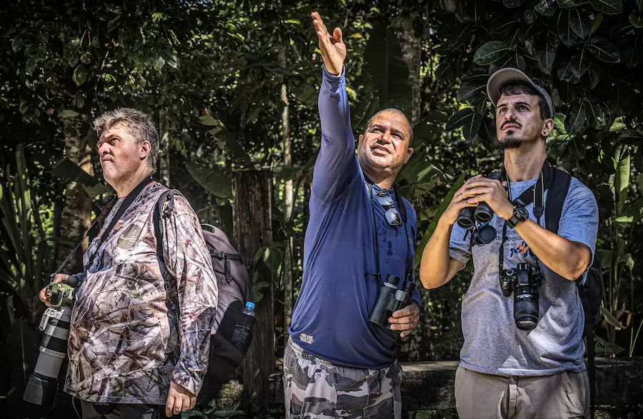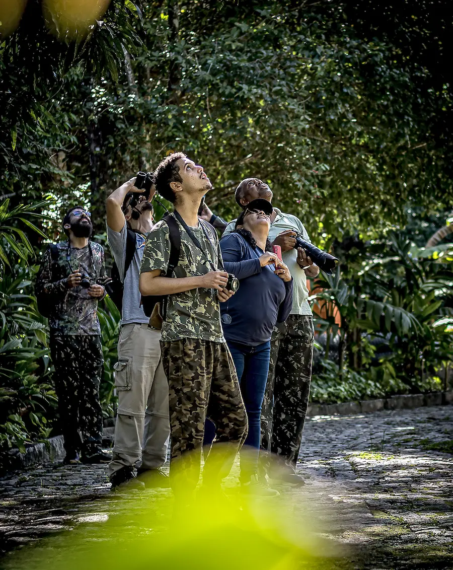 Aos que desejam passarinhar, o guia turístico de observação de aves Clarindo Silva deixa uma sugestão: “Muita gente se bloqueia muito por conta de não ter um equipamento específico, mas a observação de aves constitui em estar num ambiente silencioso, ter essa imersão dentro de uma mata para que você possa ouvir, visualizar. E se você realmente gostar, aí pode investir no equipamento. Mas pode iniciar com binóculo e depois comprar uma câmera fotográfica”.