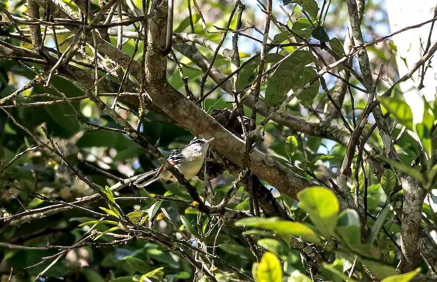 “O chorozinho-de-asa-vermelha-do-norte é uma ave de pequeno porte da família Thamnophilidae, e existem algumas populações que residem aqui no Nordeste brasileiro, principalmente na Mata Atlântica. Ela se alimenta principalmente de insetos, habita a copa das árvores e raramente desce para a parte mais baixa da floresta”, explica Ronaldo.