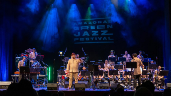 A Orquestra Som do Nordeste traz ao público um espetáculo no formato de Big Band, mesclando ritmos regionais brasileiros com influências do jazz.