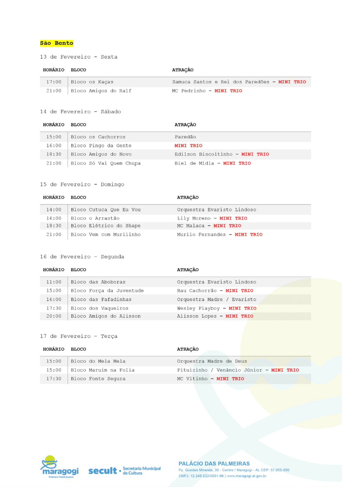 Abaixo, clique e confira a programação completa: