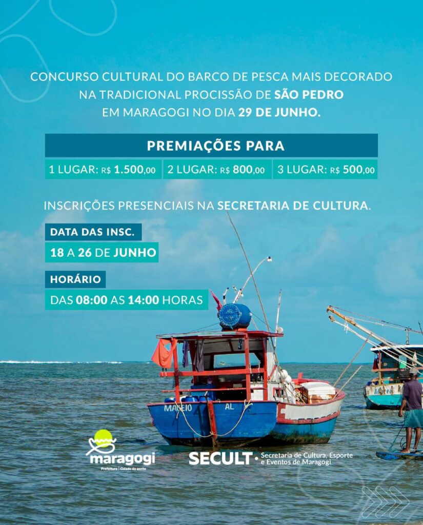 Em celebração ao Dia de São Pedro, padroeiro dos pescadores, a Prefeitura de Maragogi, por meio da Secretaria Municipal de Cultura, retoma, neste domingo (29), a partir das 8 horas, uma das mais importantes tradições do lugar: o concurso cultural de embarcações.