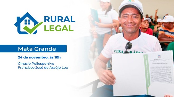 O programa Rural Legal beneficia, nesta segunda (24), 577 agricultores do município de Mata Grande, no Sertão, com títulos gratuitos de propriedade de seus imóveis rurais.